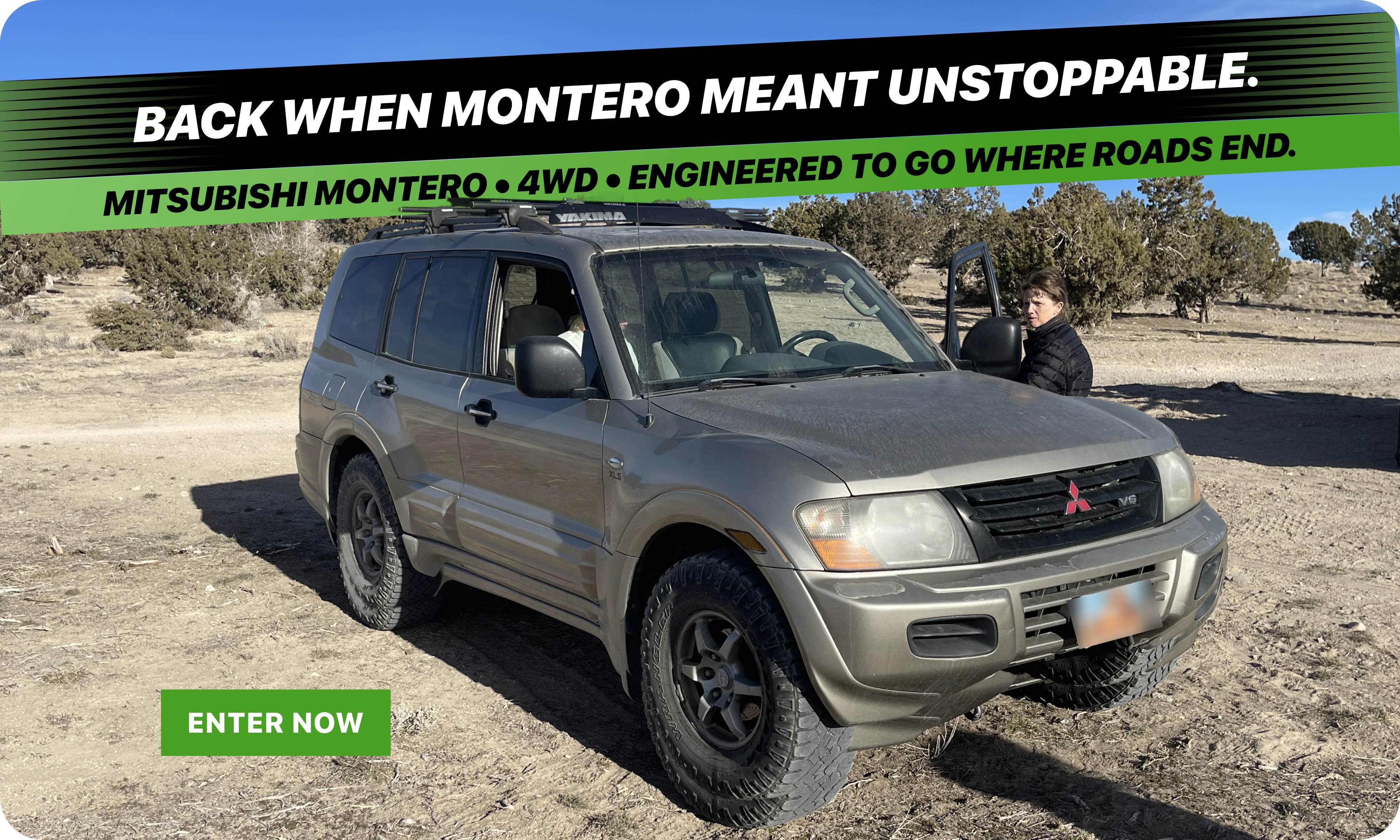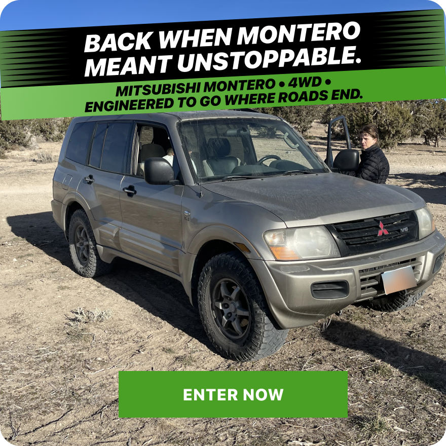 Entry options: purchase of eligible products on bentoffroadrecovery.com, verified email opt-in, or FMOE website entry. Incomplete, late, or ineligible entries are void. Ten winners will be randomly selected; the grand prize is a 2001 Mitsubishi Montero (or cash alternative equal to ⅓ the value). Winners must respond within 10 days and may be required to complete eligibility paperwork. Prizes are non-transferable and winners are responsible for taxes. By entering, you accept the rules and consent to release and publicity terms. Full rules and privacy policy are at bentoffroadrecovery.com